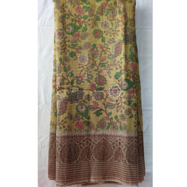 Texture: Raw, slightly coarse feel typical of natural Tussar; breathable and elegant